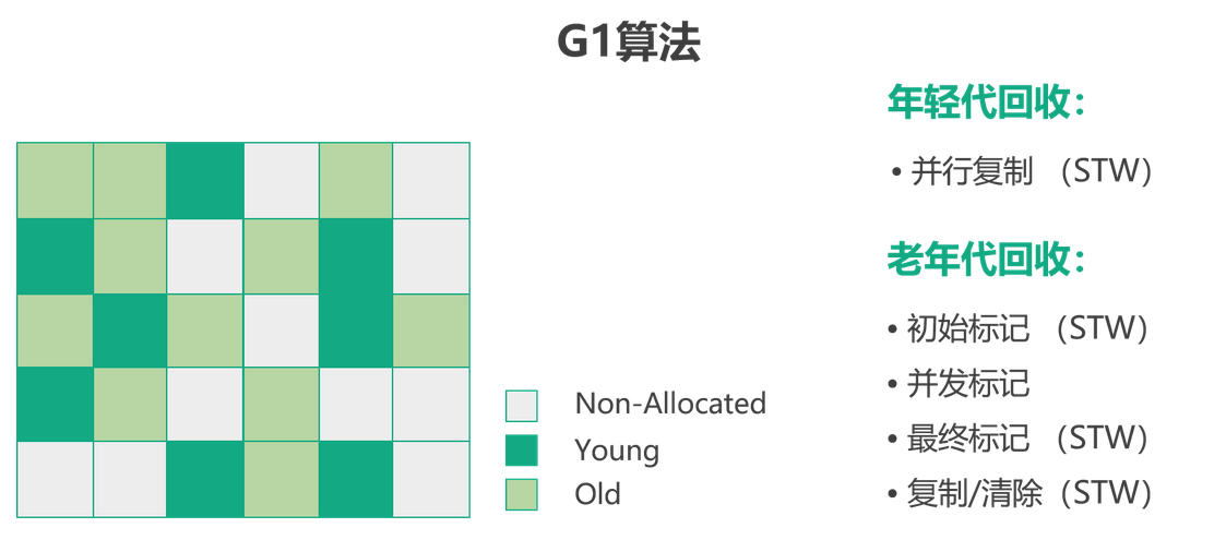 G1 的年轻代回收,采用复制算法,并行进行收集,收集过程会 STW。