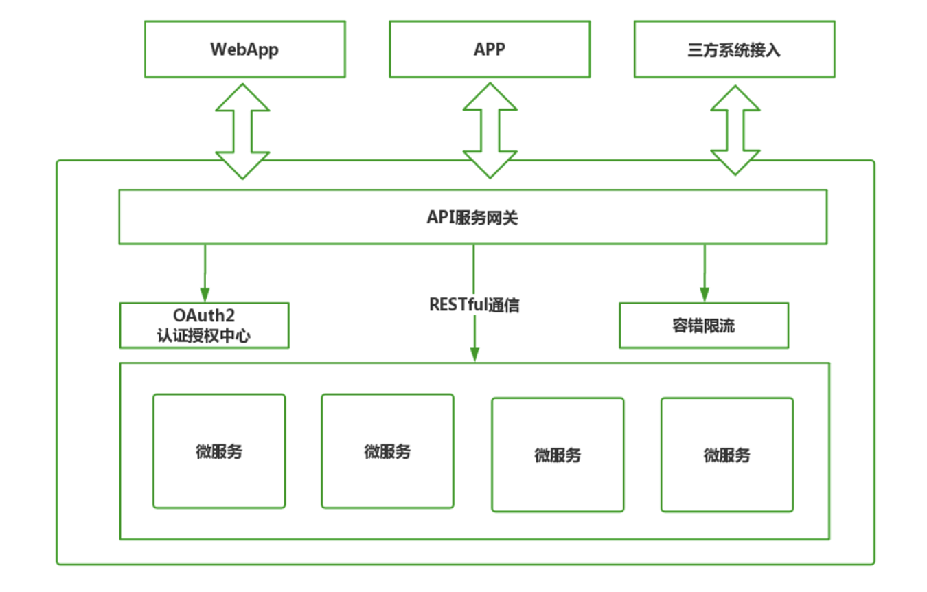 API 服务网关(API Gateway):服务网关解决问题 4。对于最终用户来说,微服务的通信与各种实现细节应该是透明的,用户只需关注他要使用的 API 接口即可。因此微服务架构引入服务网关控制用户的访问权限。服务网关是外部环境访问内部微服务的唯一途径,在这个基础上还可以扩展出其他功能,例如:用户认证与授权、容错限流、动态路由、A/B测试、灰度发布等。