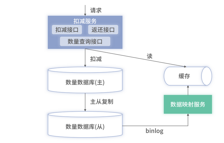 实现简单,即使读使用了前置缓存,整体代码工程就两个,即扣减服务与数据映射服务,在需求交付周期非常短、人力紧张的场景是非常适用的;