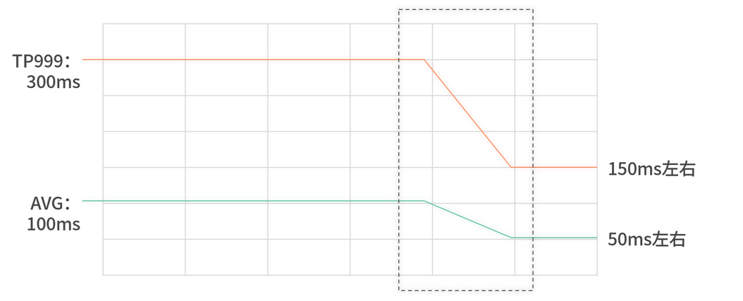 在实际的案例中,当进行此项升级后。性能有了较明显变化,TP999 基本降了一半,平均性能降了 20%~30% 。下图 3 展示了一个大致效果图,你可以感受一下: