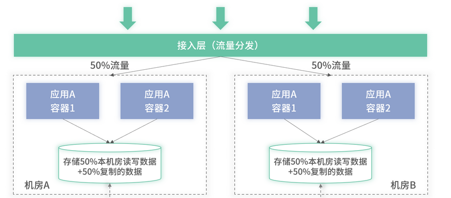 双机房部署使得微服务具备了机房级别的容灾能力,当机房出现故障时,可以快速地进行切换,而不用耗费几个小时甚至更久的时间,在一个新的机房进行微服务和数据库的重新部署。但上述的部署里,数据库其实是单机房部署的。因为在实际运行时,只有主库承载读写流量,从库只是跨机房进行数据复制,作为灾备使用。