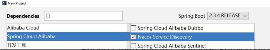 在向导后面的依赖页面,要接入 Nacos 有一项是必选的,请大家注意。