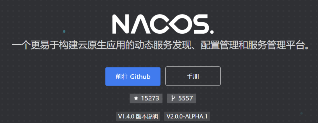 Nacos 官方地址为https://nacos.io/zh-cn/index.html。由阿里开源,官方定义为: