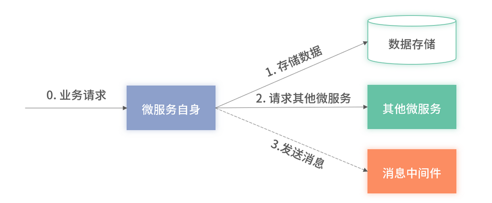 下面将基于下图 2 所展示的三大类依赖:其他微服务、数据库、消息中间件,逐一介绍可能引发的故障的应对方案和最佳使用准则。