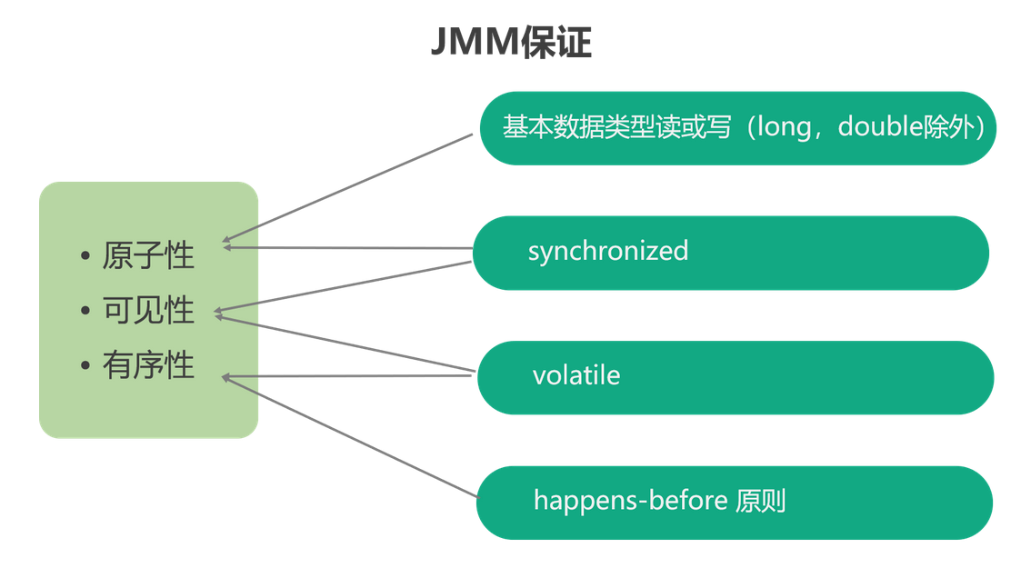 如下图所示,来看 JMM 如何保证原子性、可见性,有序性。