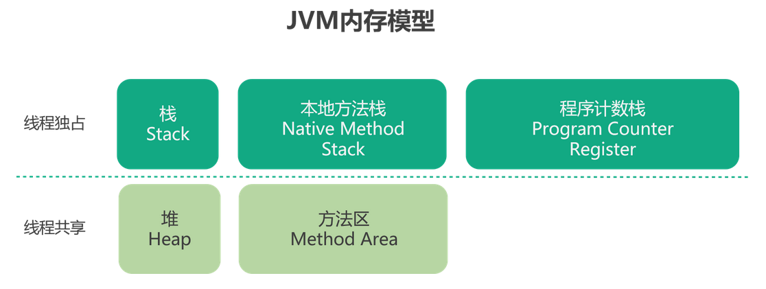 JVM 内存模型主要指运行时的数据区,包括 5 个部分,如下图所示。