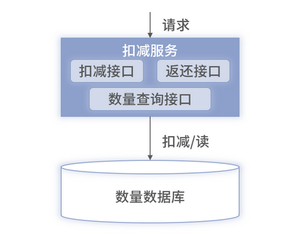 基于上述特性实现的架构方案如下图 1 所示,它包含一个扣减服务和一个数量数据库。