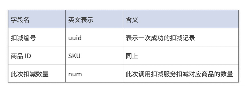 扣减完成之后,需要记录流水数据。每一次扣减时,都需要外部用户传入一个 uuid 作为流水编号,此编号是全局唯一的。用户在扣减时传入唯一的编号有两个作用。