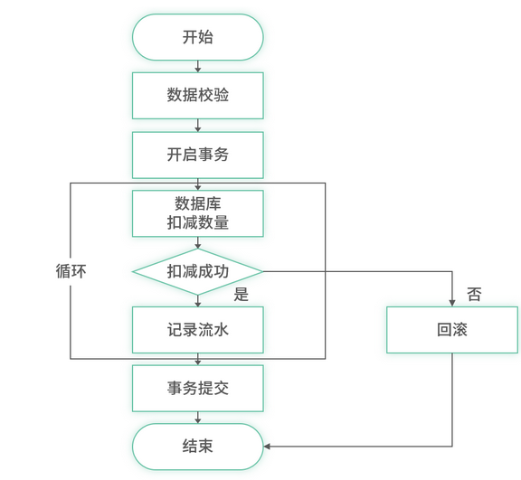 where skuid='123456' and leavedAmount>=currentAmount此 SQL 采用了类似乐观锁的方式实现了原子性,在 where 条件里判断此次需要的数量小于等于剩余的数量。在扣减服务的代码里,判断此 SQL 的返回值,如果值为 1 表示扣减成功,即用户此次购买的数量,当前的库存可以满足否则,返回 0 进行回滚即可。