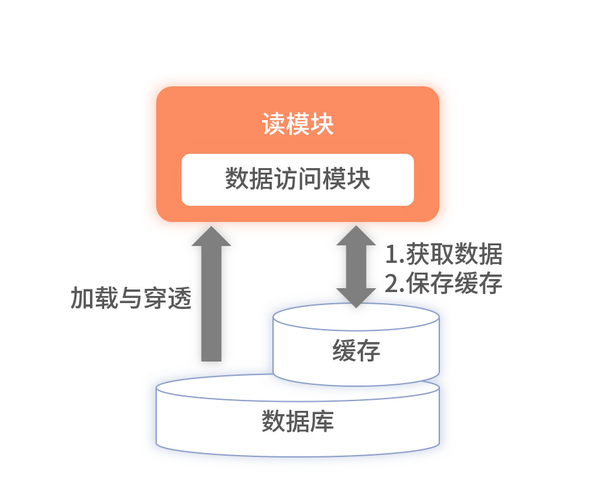 此架构称为懒加载模式。在初始的时候,所有数据都存储在数据库中。当读服务接受请求时,会先去缓存中查询数据,如果没有查询到数据,就会降级到数据库中查询,并将查询结果保存在 Redis 中,以供下一次请求进行查询。保存在 Redis 中的数据会设置一个过期时间,防止数据库的数据变更了,请求还一直读取缓存中的脏数据。