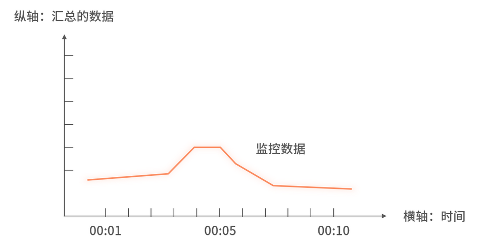 上图 1 的 X 轴表示时间,由固定的间隔组成,此间隔可以是秒级或分钟级。Y 轴表示在该时间间隔里的运行状态数据的汇聚,它可以是间隔数据的累加、平均值、最大值等方式。