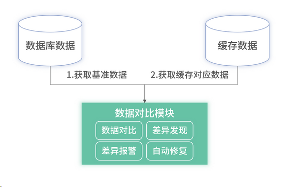 数据对比以数据库中的数据为基准,定期轮询对比缓存和数据库的数据。如果发现不一致后,可以增加延迟重试,再次对比。如果多次对比不一致后,可以增加报警并保留当时的数据,之后以数据库中的数据为准刷新缓存。延迟重试是为了防止因同步的时差,出现短暂的数据不一致但最终数据一致的情况。其次,保留出错现场的数据是为了排查定位问题。