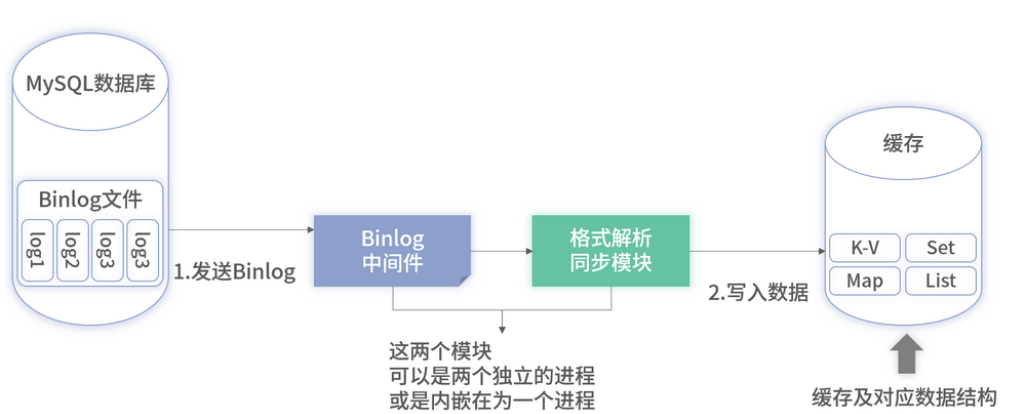 从上图 1 中可以看出,基于 Binlog 的缓存数据同步和纯 MySQL 的主从同步在架构上是存在区别的,主要有以下 4 个区别。