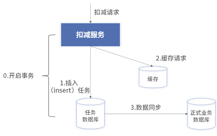 当开始事务后,首先将此次序列化后的扣减明细写入到扣减数据库中的任务表里。