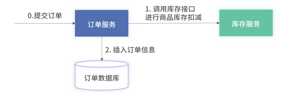 下面将重点讲解在采用微服务架构后,如何应对随之而来的分布式事务。这里以提单作为案例,介绍分布式事务的实际场景。在微服务架构下,订单和库存是两个单独的微服务,它们之间的架构如下图 3 所示: