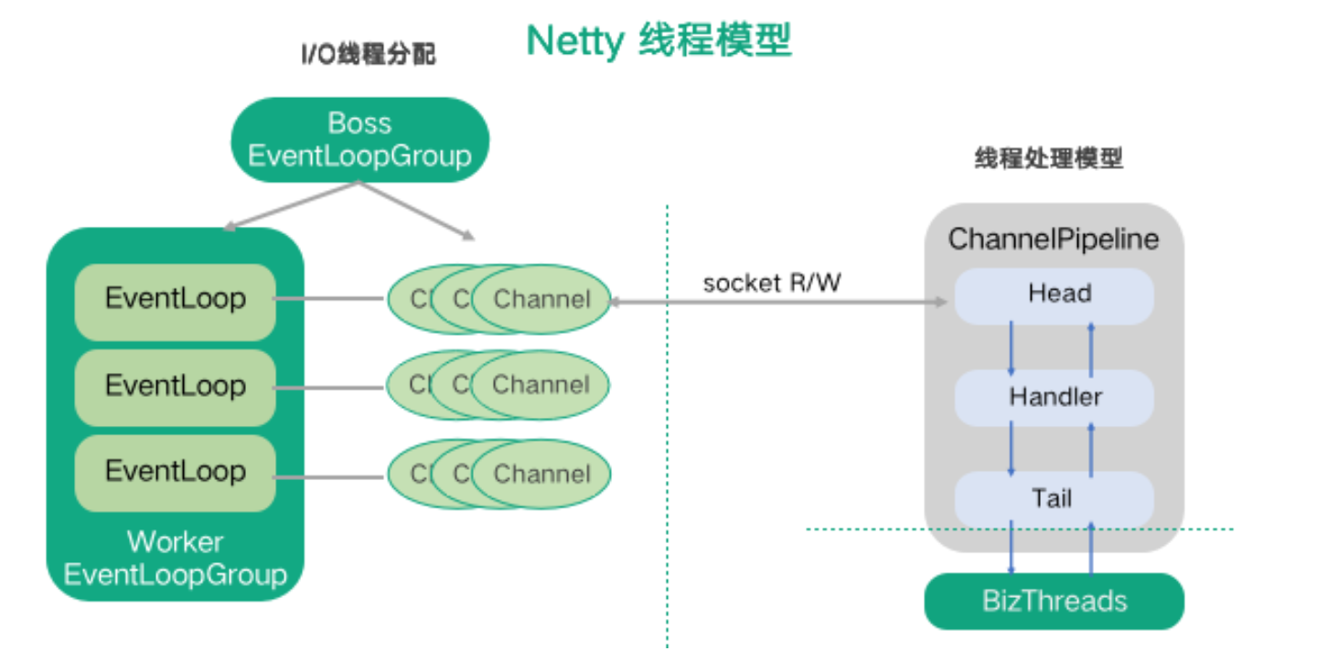要理解 Netty 的线程模型和消息处理的pipeline机制。