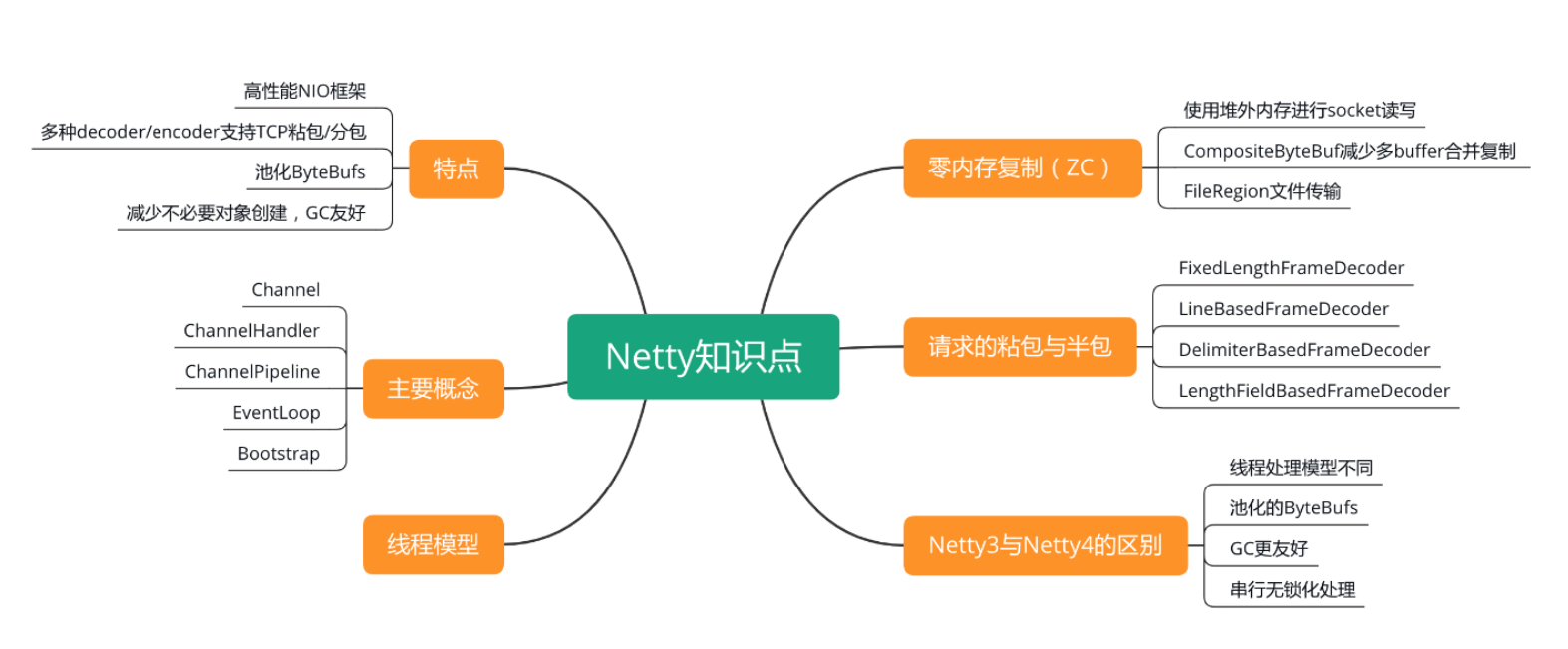 下面我们来看 Netty 相关的知识点,如下图所示。