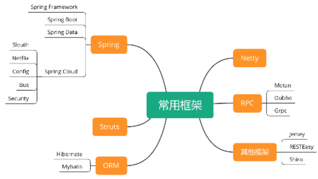 先来看常用框架的知识点汇总,如下图所示。