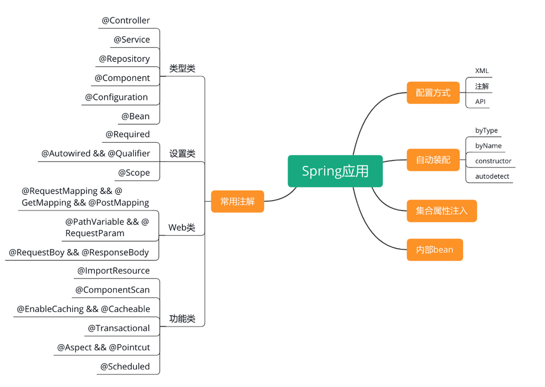 下面来看 Spring 应用相关的知识点,如下图所示。