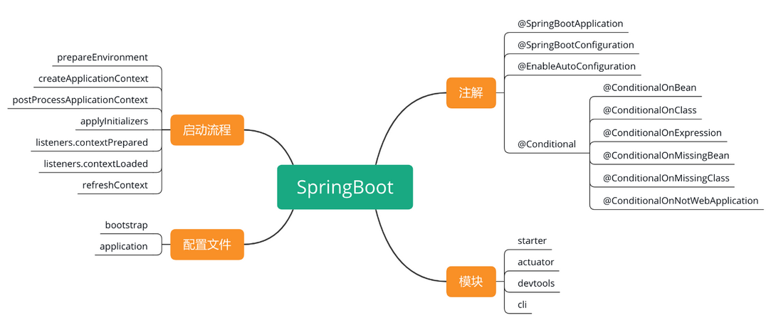 下面来看 Spring Boot 相关的知识点,如下图所示。