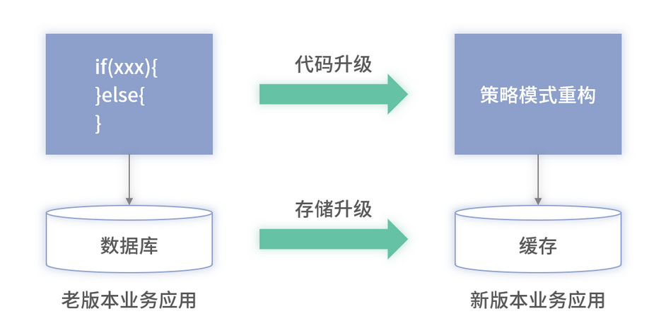 随着业务的发展,微服务的流量由每秒几百的 QPS 上升至上千或上万的 QPS 时,可以将微服务的存储从数据库升级为缓存,以便有效应用业务增长带来的流量。